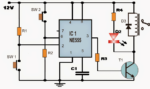 Aqui também um astável 555 é usado como transmissor IR para acionar o circuito opamp Rx.