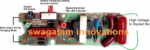 Um portão NAND de duas entradas quádruplas é conectado como um multivibrador no circuito, que opera em aproximadamente 40 kHz. Um dente de serra residual de 120 Hz na linha de alimentação regula a frequência ultrassônica com a menor quantidade de filtragem na fonte de alimentação.