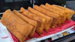 - Salgado com recheio exposto chama a atenção dos clientes.