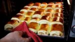No primeiro passo, misture água, leite, óleo, açúcar, sal, fermento e farinha de trigo até que a massa fique bem durinha. Deixe a massa descansar e, em seguida, abra-a e corte-a em tiras. Recheie as tiras com queijo mussarela e enrole os salgados. Leve-os ao forno por 15 minutos e, assim que retirá-los, pincele com leite condensado e coco ralado.