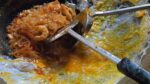 O famoso frango inteiro de caldeirão em Busan / frango frito coreano – comida de rua coreana