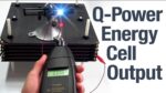 <!– I started developing this product a year ago with the intent of creating a self-sustaining power supply one that doesn't require you to plug it in or charge it with any other device not wind solar hydro I put everything in this standard 19-inch rack mount box because I look at this as a building block much like the computer servers that have this form factor in data processing centers as a power producing building block you simply add more units in the rack until you achieve your goal now I'm gonna show you really quickly just a couple of Things here and then I'm going to open the top and explain everything to you and show you how it works but right here you can see I've added a couple of USB ports to to this device now again I want to be right up front with you and let You know that this is a prototype these are not available for sale at least not yet so anyway I put these two USBs you just hit this little switch here and the LEDs light up let you know that it's powered up the red one here indicates That the the two USB ports are live and then you got phone or tablet or or whatever you want to use these for just plug it in and charge it up or if you got one of these cheap little USB testers you can you can plug other Devices into it and see what kind of power it's demanding it tells you the volts tells you the amps and just plug anything in this is just a little light anyway that that's just a little gimme and it doesn't really need that because the most important thing we just remove This is in the backside now I haven't screwed the lid down so that's why everything looks a little bit loose here but there's a couple of binding posts here I've got it fused for 20 amps though the internal can go can deliver much more than that but I just want to Keep it safe you just unscrew these and and put a standard cable battery type cable like this one here and just attach that to it and then attach these from one to the next in parallel series or whatever kind of output that you're looking for So that's that let's open it up okay I will give you just a quick overview on the simplest device there could be this thing really only consists of two parts these are graphite polymer cells they are in this black heat shrink this big industrial heat sink there's two blocks Of these each each block and they set on top of each other each block is has 12 cells in it and they're all connected in parallel and then the block underneath same thing in parallel and then those two blocks are connected in series so it gives you a little higher voltage but Plenty of current and this is a two point eight five Maxwell super cap or ultra cap this is this is a close-up on it these monsters are are pretty powerful spec sheet on this says that of course it will last for a million cycles of course there isn't a Lithium battery on the planet that can do more than several thousand and I'll probably outlive me and most of the people watching this video but 3400 farad's in just this one three of these things in parallel you can have over 10,000 fare is pretty amazing the reason That the posts are so big is because they can also output 2,000 amps every time you cycle this thing for a million cycles suffle that's a spec sheet from Maxwell it says that if you short-circuit this thing it'll produce up to 10,000 amps so you know not trying to do product placement I'm just impressed with the product it's good company good products and so they make sense to me so I use them says here that it's 3.8 4 watt hours it's actually closer to 4 and I usually like to hold these this size up to about 2.9 maybe Even to 0.95 3 volts is the maximum so and you do what you want so this is an electric a long-term electrochemical device okay and it's entire function a job in life is just to keep that cap charged now naturally it's not going to keep up with as fast as you could drain This thing you could drain it in a few seconds if you if you so desired of course you'd have to change the fuse I've only got a fuse for 20 amps so anyway man I did that for safety's sake too you can understand why now but anyway that's that's their whole job is Just to keep that thing charged and so so this is the source of energy and this is the delivery point that's it just a and B done these over here are just extra parts the the two USB ports and some wire is the binding posts that you See back here I'll turn it to the side I'll turn it to this n view so you can see the cells and I'll go into greater detail on these cells how they're made here's an in view of the cells I know this kind of looks like a mess in here But it's nothing but reflection from the shiny black heat shrink so ignore that but anyway I don't know if you can see it very well because it's pretty dark in there but but there's 12 cells and in fact I can I can show you right here you Can see where they separate okay these twelve cells on top are in parallel again and the twelve cells on the bottom are also in parallel and then they're connected in series right here and then here's the output that goes up to the cap the last part of this video that Some of you have been waiting for begs the question what are these cells made of and now I'm going to explain to you what they're made of I told you that the cells were made a year ago and they've been sitting on the shelf until I could Get back to this project at a really good year with the Q beta program and thanks to many here in the US and many abroad that have helped support that program and that helps us accelerate and go into these other parts as well as advance the systems that we have Developed but the so a year ago before I made these cells I made these prototypes and here's one of the prototypes and that's if you can see this maybe I can zoom out a little bit and bring it closer let it focus okay so this is a Graphite polymer cell and this is the graphite polymer plate on this side the active area is one inch by two inches and the the thickness o